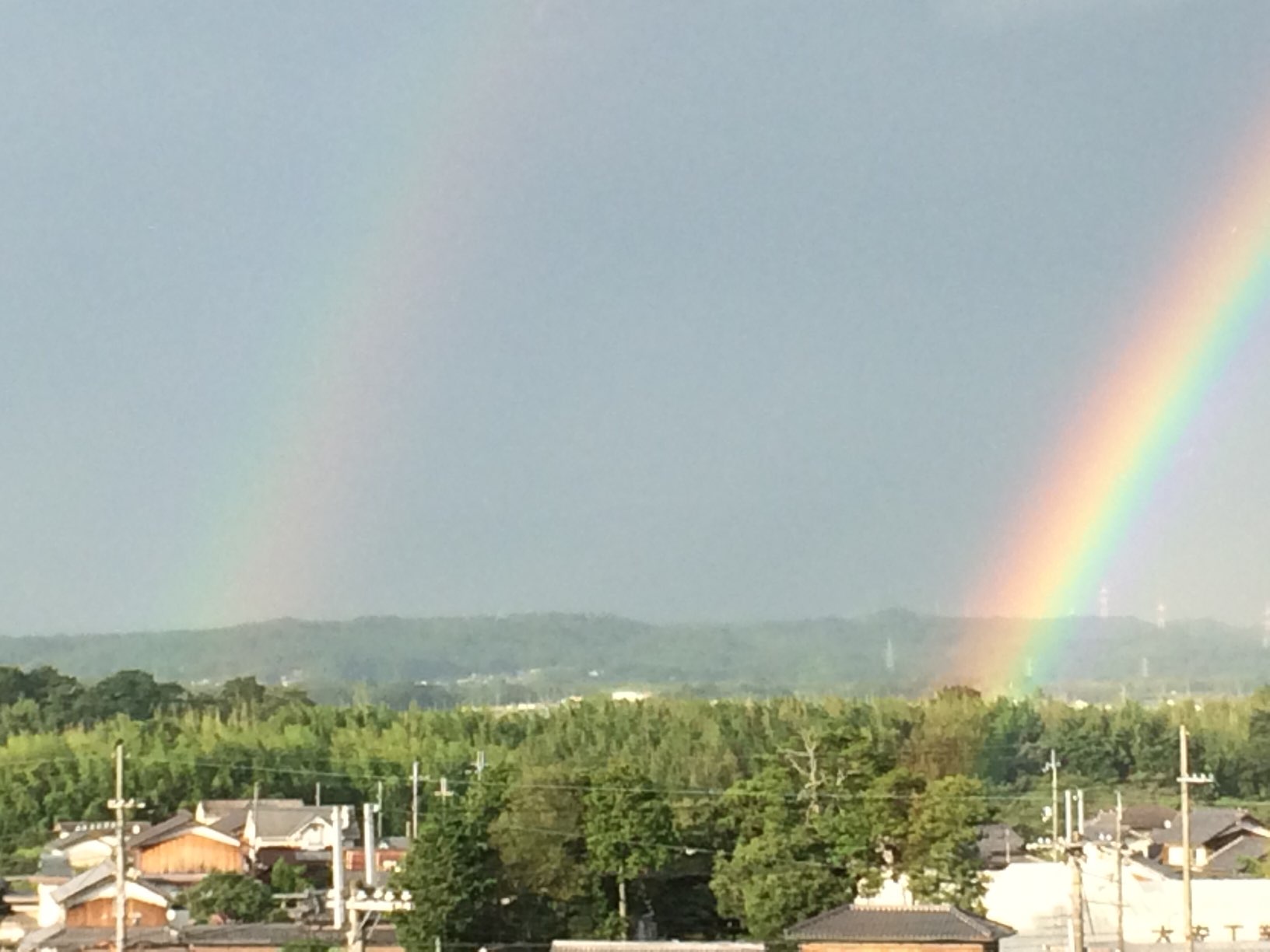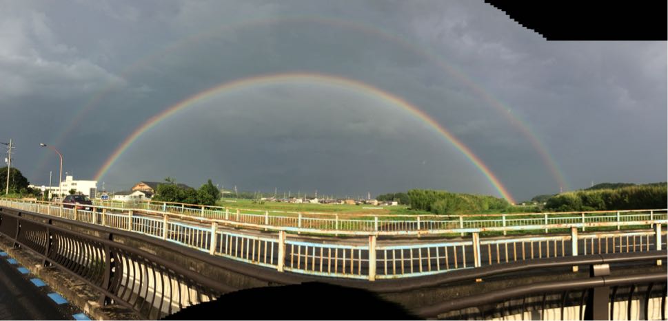 超綺麗な形の虹が出てましたw咄嗟にiPhoneのパノラマで撮影しましたwよく見て下さいこれ2重なんですよw
